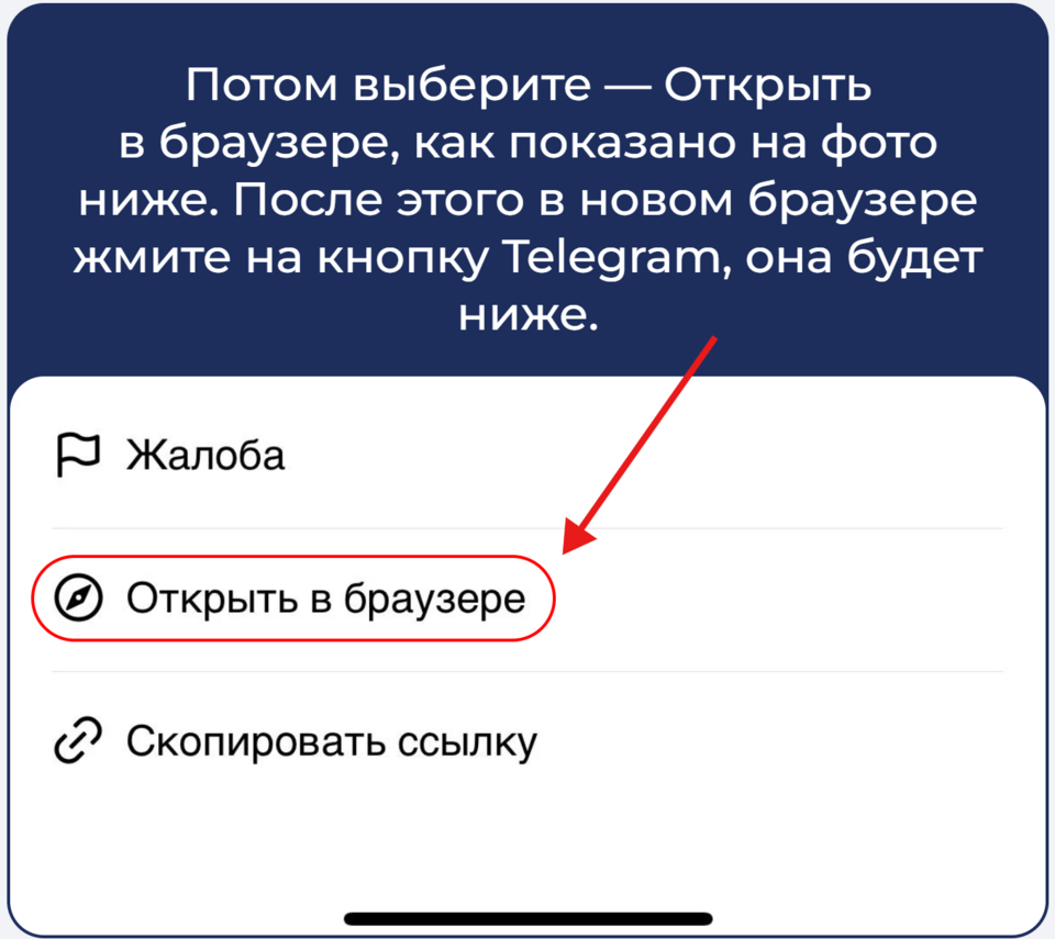 если уже нажали на три точки и нажали "открыть в браузере", то