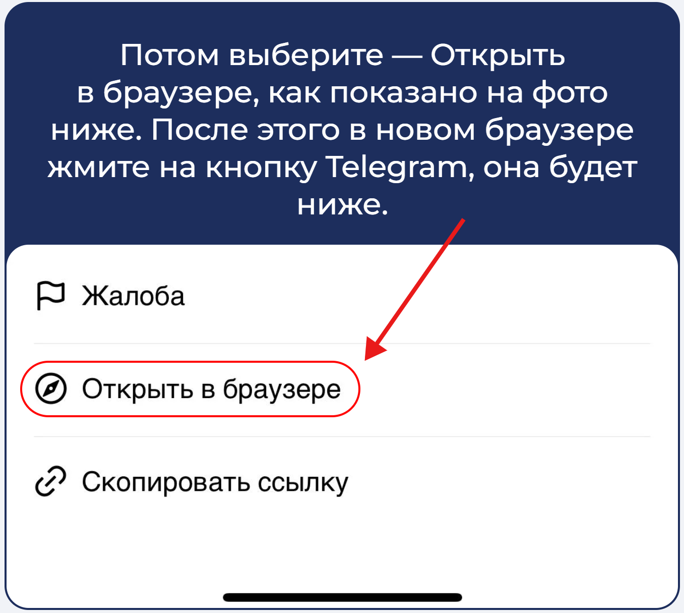 "открыть в браузере", то
